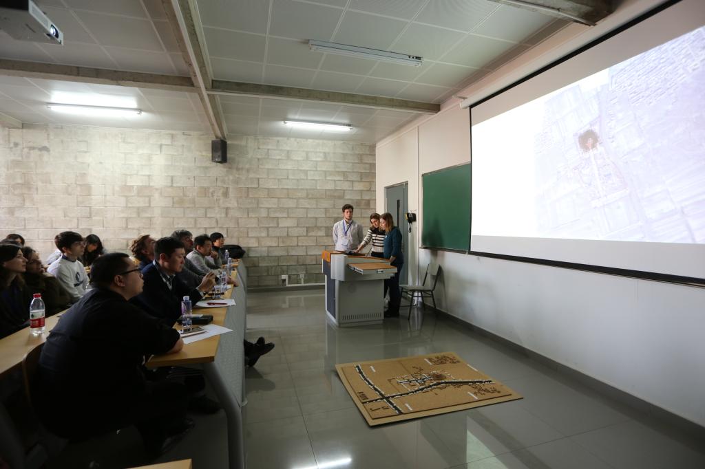 此次联合设计在我校的教学交流活动将一直持续到3月11日,联合设计的开题环节由我校组织,之后的中期讨论、汇报在哈尔滨工业大学进行,毕业答辩环节在西班牙拉科鲁尼亚大学完成。本次活动共有15位西班牙学生、16位哈工大学生、11位我校学生参加联合毕业设计。在我校期间,将组织4场学术报告,分别由我校外聘硕士生导师温捷强(教授级高级工程师,内蒙古新雅建筑设计有限责任公司董事长)做“场域------地域建筑的探索与研究”,外聘硕士生导师富志强(教授级高级工程师,呼和浩特市规划局副局长)做“呼和浩特城市发展与未来建设”,张鹏举教授做“自然建造”,拉科鲁尼亚大学Jesús Irisarri教授做“Beyond appearance”的学术报告;组织毕业设计题目“呼和浩特昭君墓园及周边区域城市设计与建筑设计”的基地调研;组织三校师生对毕业设计进行深入的构思、图纸绘制、模型制作和汇报文件制作。